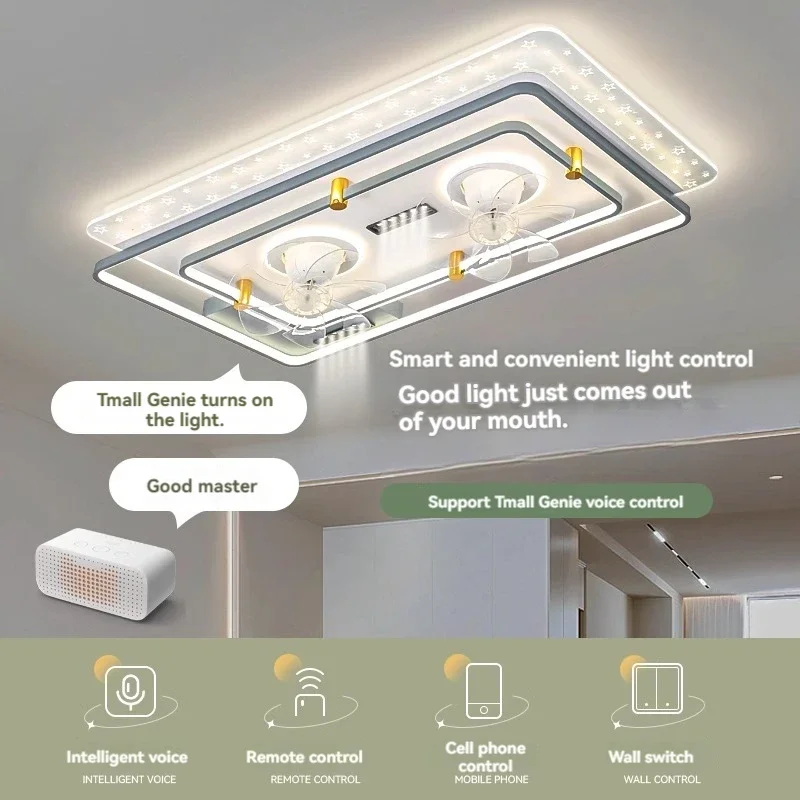 Ceiling Fan Lamps for Living Room Modern Interior Dimmable with Remote Acrylic Full Spectrum for Bedroom