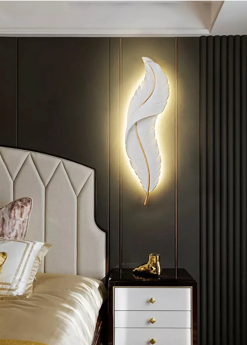 Modern decoration Luxury indoor Living room Bedroom Creative Feather Lights Resin sconce Nordic Wall Lamp Led Wall Lamp Light