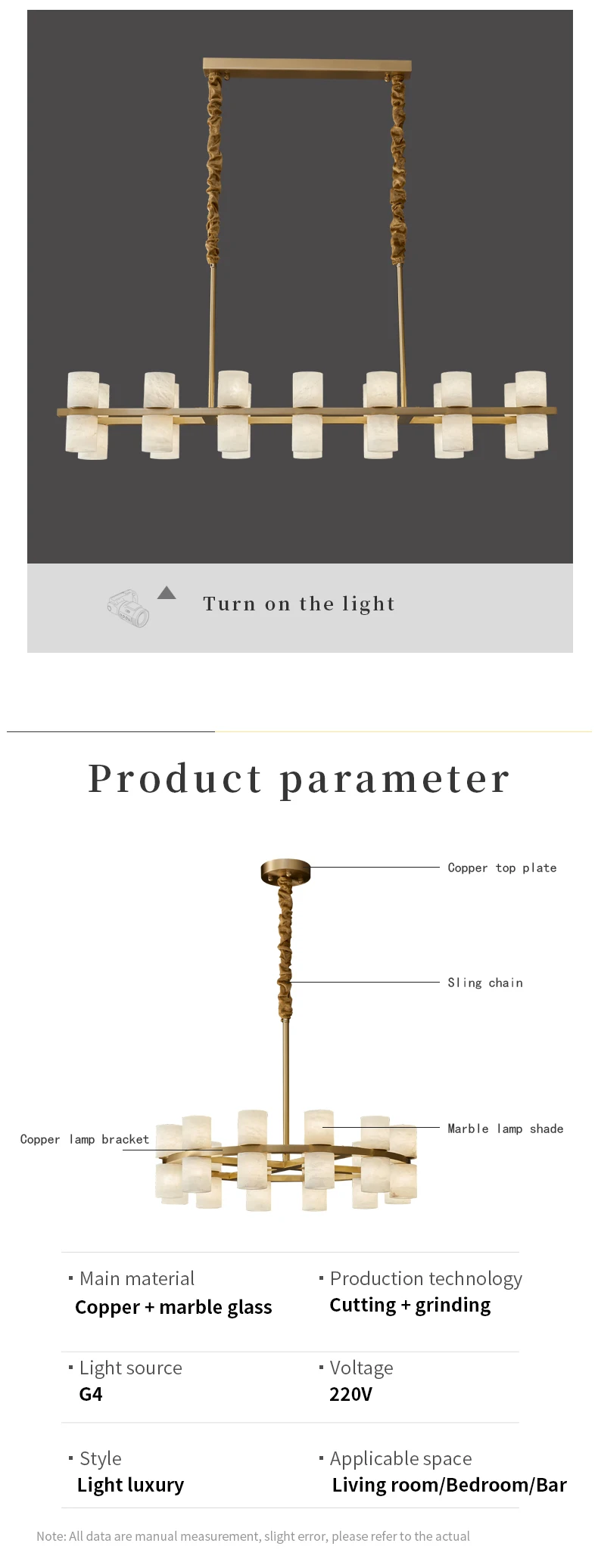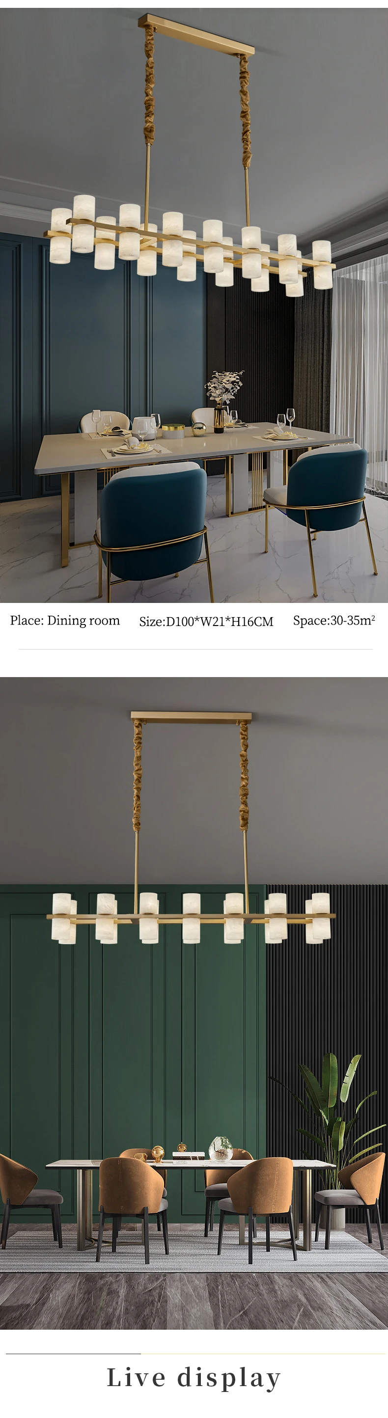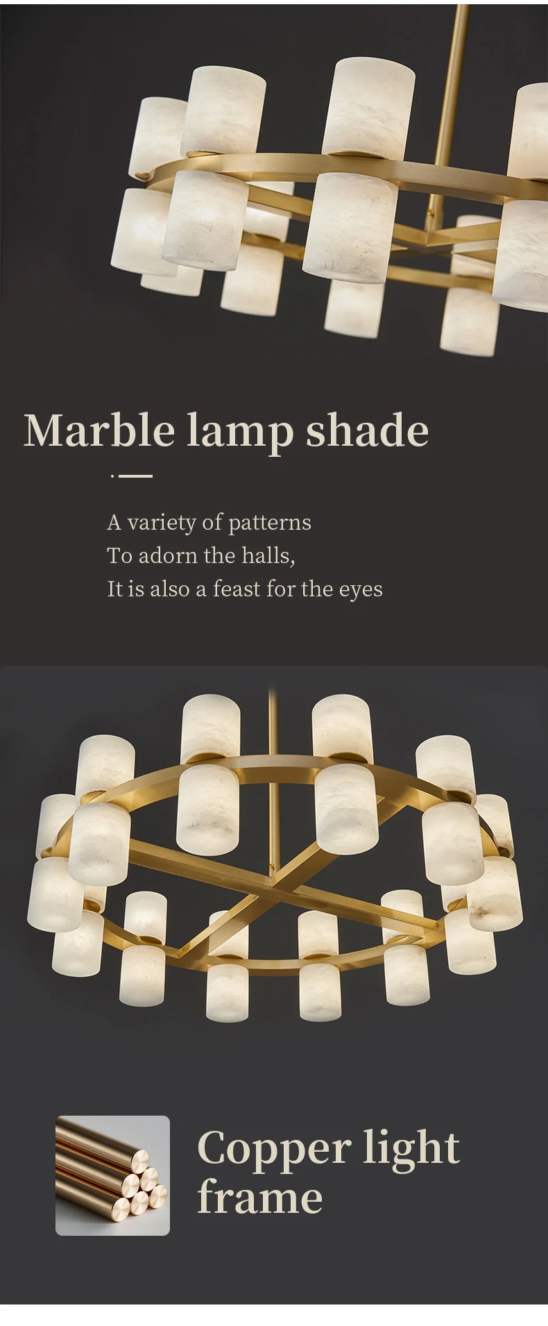 Nordic Postmodern Minimalist Living Room Aisle Brass Marble Chandelier Retro Personality Bedroom Study Alabaster Pendant Light