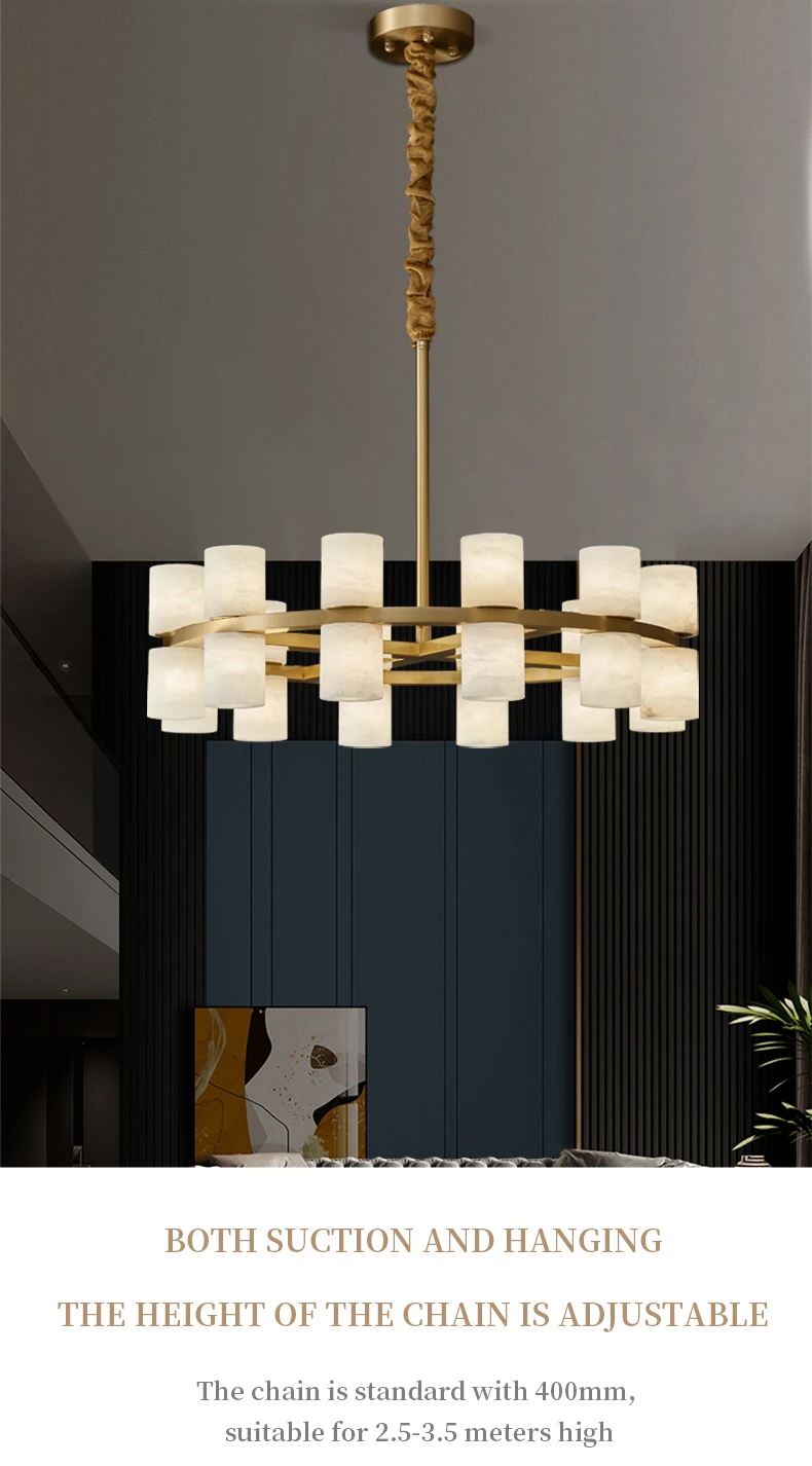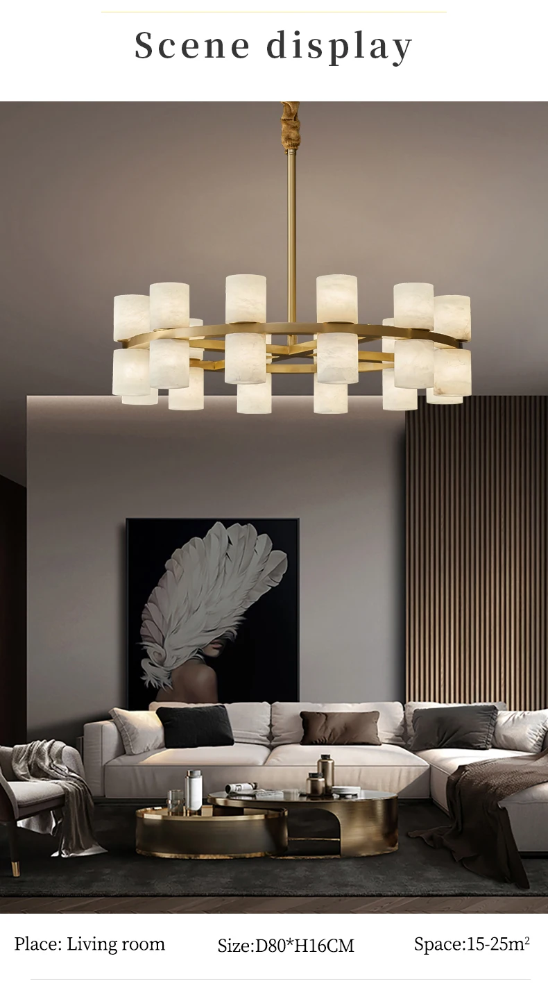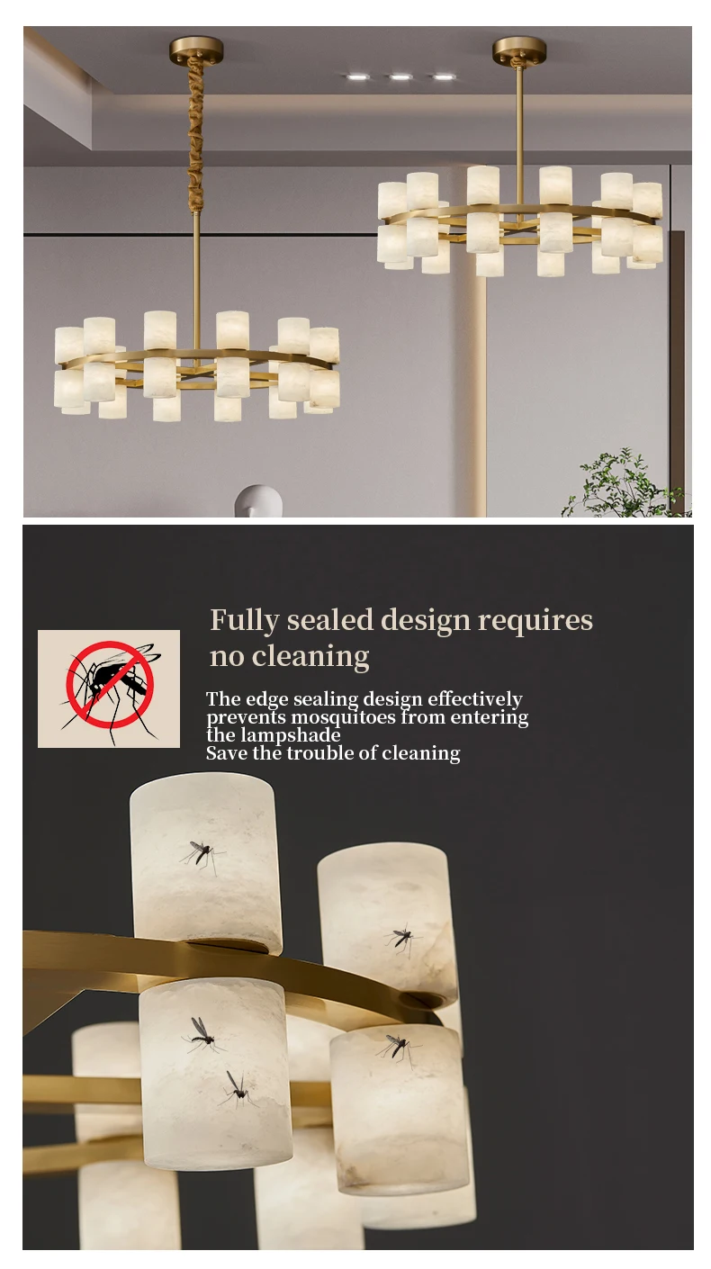 Nordic Postmodern Minimalist Living Room Aisle Brass Marble Chandelier Retro Personality Bedroom Study Alabaster Pendant Light