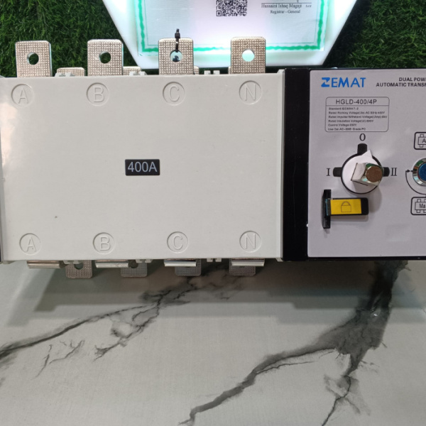 400Amps Heavy Duty Automatic Transfer Switch 4poles (3phase)…Automatically Changes to the available Source of Light When Power Fails.